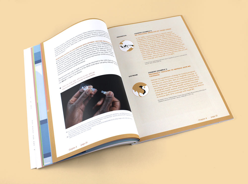 Inspiration for the design of this book is a happy delivery and baby. Our design with a soft, muted color palette and illustrations paired with each chapter of the book make reading about vaccine introduction fun.